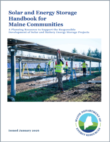 In January 2026, the Maine Department of Energy Resources published a new resource, Solar and Energy Storage Handbook for Maine Communities: A Planning Resource to Support the Responsible Development of Solar and Battery Energy Storage Projects. The handbook serves to assist local communities in planning for the development of solar and battery energy storage projects by providing guidance and materials on the following: